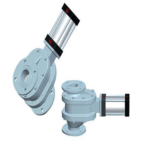 本阀门采用除灰仓泵控制箱对其进行控制,当气源进入执行器A口时,阀杆带动阀板向下运动,阀门关闭。当气源进入执行器B口时,阀杆带动阀板向上运动,阀门开启。阀板与阀座之间加装弹簧,弹簧的弹力始终使阀板压向阀座,保证阀门的密封性和稳定性,又允许阀板在垂直上下方向移动,这有助于补偿阀门零件的热胀冷缩,并能够有效的克服任何背压变化对密封的影响与防止微小的颗粒介质进入两密封面之间的缝隙。在阀门的开启、关闭过程中,双插板的阀板能产生自转,进而使得密封面之间能够产生研磨,也有效的起到了抛光作用,而且由于阀体对通道存在偏心的设计,在阀门开启排卸粉体物料时,这样会产生有效的涡流,形成的物料的旋涡,这样阀板会自行清扫阀门内腔。所有的这些特点,使得这种阀门具有较长的使用寿命,为您的系统安全运行提供了可靠的保证。